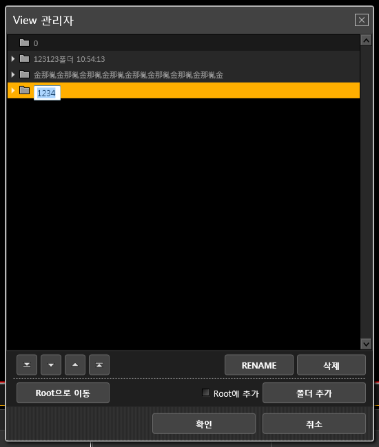 그 이후로는 트리뷰 아이템을 더블클릭하여 텍스트박스로 수정한 값은 표출이 되는데, RENAME 버튼을 통해서 수정을 할 경우