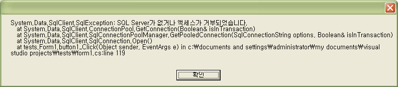 다른곳에서 위의 코드가 들어간 exe 파일을 실행 하면 에러 -_- 뜹니다.