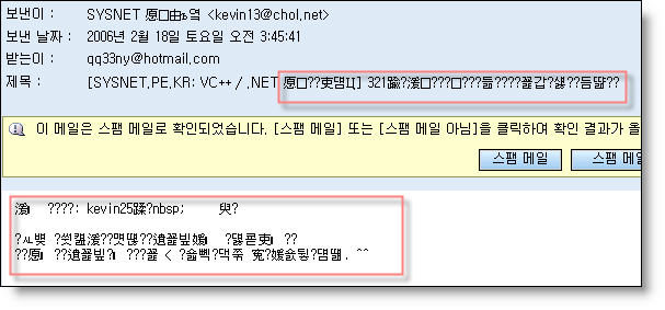 323정보문2/21/200614805메일 내용에서 한글이 깨집니다. [1]파일 다운로드1