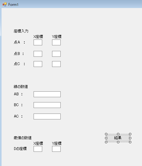 이번에 만들어 볼 프로그램은 그림과 같이 "입력된 삼각형의 각 꼭지점 좌표로 변의 길이, 각변의 직각 교점의 좌표 구하기" 폼입니다!