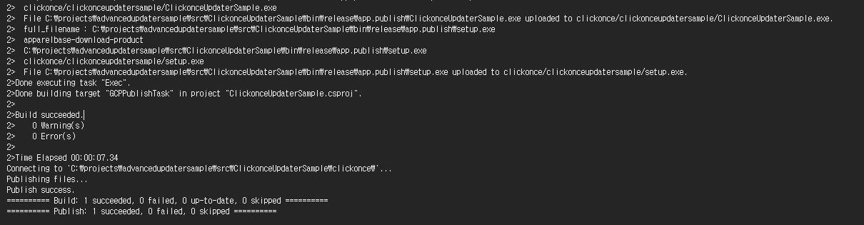 하지만 첨부 파일 처럼 Clickonce의 배포위치로 Publish 되는 것은 제가 추가한 Task가 실행된 이후이네요.