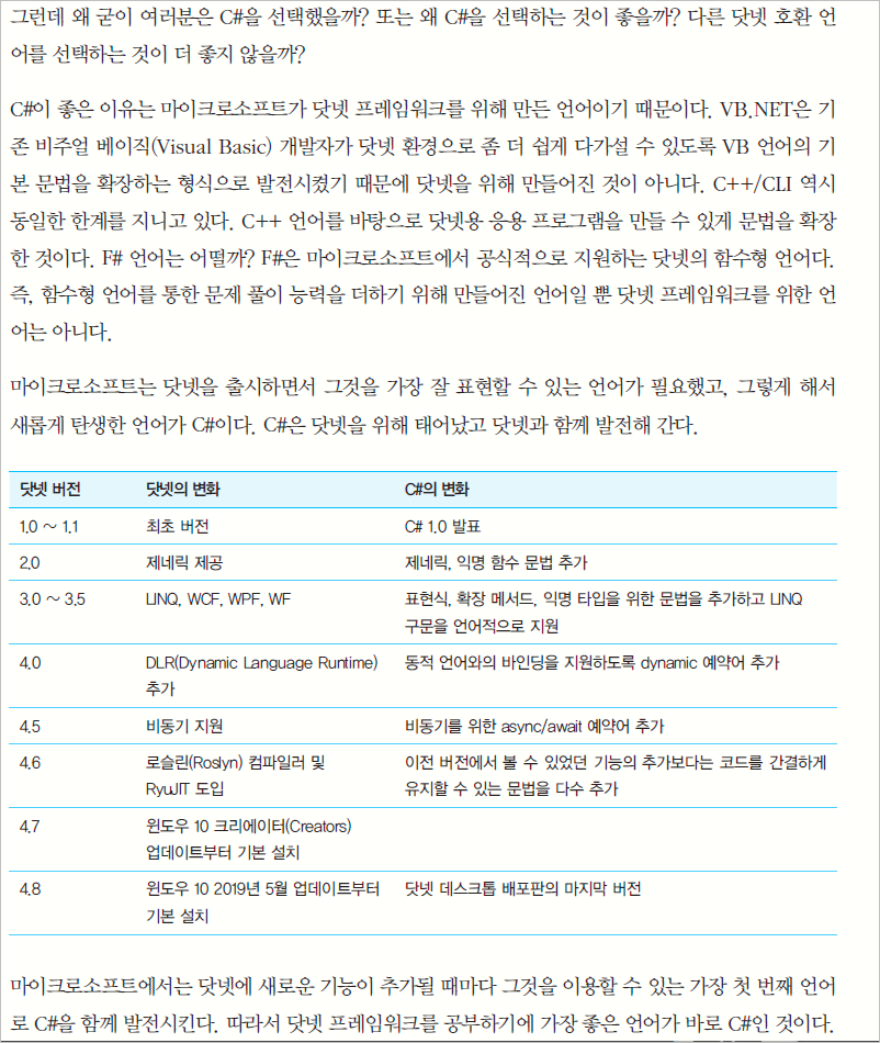 부모글 보이기/감추기 AD BLOCK 해제 요청 이 글에는 광고가 많이 들어가 있지 않습니다. adblock을 해제하셔도 글을 읽는데 그다지 부담이 없으니 해제를 부탁드립니다. C# 8.0 책을 사놓고 오늘부터 읽기 시작했는데 ^^; 10 ~ 11page가 비어 있습니다..! 9페이지 1.1.3 공용타입시스템 이후 다음 장이 없어서.. 혹시 해당 페이지에 대한 내용에 간략하게나마 요청 드려도 될까요? 몇 장 더 확인하니 아래 페이지도 비어 있습니다..! ** 18, 19 ** 22, 23 [다음 글] 윈도우 배율을 알 수 있을까요?[이전 글] 객체를 생성과 동시에 초기화 하는 방법 [최초 등록일: 5/20/2021] [최종 수정일: 5/20/2021] 비밀번호 댓글 작성자 2021-05-20 09시48분 일단 임시로 첨부한 이미지를 참고해 보시고요, 출판사 측에 파본 교환을 신청하시면 정상적인 책으로 교환을 할 수 있을 것입니다. 정성태 2021-05-21 09시13분 [cs린이] 감사합니다! [guest] ... 31 32 33 [34] 35 36 37 38 39 40 41 42 43 44 45 ... NoWriterDateCnt.TitleFile(s) 5056박종윤8/30/201824148c# dll을 C++에서 사용 시 event 호출 [4]15055초보자8/29/201822016asp.net 에서 다른 서버의 iis를 stop하는 batch file을 실행시키는데 동작하지 않습니다. [5]5054사도신8/29/201820619[wpf] textbox insert overite 모드시에 [4]15053엿장수8/26/201818653directshow filter 에서의 IMediaSample 의 시간에대한질문입니다 [1]5052오명현8/26/201818387Tcp소켓 실습 Exeption 도와주세요! [4]15049오명현8/23/201819027책 477페이지 내용 중 이해가 안가는 부분이 있어 질문드립니다. [1]5048오명현8/23/201818199포트 관련 질문 하나더 있습니다. [1]5047오명현8/22/201819317포트가 없을 경우를 가정한 내용에 대해 질문이 있습니다. 책468p. [1]5046엿장수8/22/201818709다이렉트쇼 필터 추가하는데 [2]5045임도진8/22/201820138c# opencv dll파일 로드 질문 [3]15044엿장수8/20/201819952graphedit 에 등록되어있는 필터를 가져와서 사용하는방법을 알고싶습니다 [2]5043hori...8/20/201820030Expression에 대한 책의 예제 관련하여 질문드립니다. [1]5042황윤하8/20/201822329모드버스 TCP 관련 질문 [3]5041david8/18/201821852.NET WebAPI 에서 Response 지연되는 이유 [3]5040농상8/14/201820917정규표현식에 대해서 [3]5039유영태8/14/201822931비동기 소켓사용후 해당 스레드가 남아있을때 처리 방법 [4]15038이정석8/9/201820925서버파일 로컬파일 비교 [2]5037jjh8/8/201826214c# 으로 화면캡쳐해서 동영상으로 만드는앱을 만들고싶습니다 [6]5036볼딱지8/8/201823615C# programming 개발 관련 질문이 있습니다. [1]5035궁금합니...8/8/201824593C# 버전 고민 어떤 책을 사야하나요? [1]5034신동열8/8/201821283덤프 파일 분석 관련해서 문의 드려요. [1]5033최규성8/7/201824807C# WinForm, Oracle 9i 로 프로그래밍시 ODP.NET, 배포 설정 방법 질문입니다. [6]5032이정석8/6/201826979C# 으로 만들 dll 등록 [7]5031J.S.8/6/201820748System.Array class의 구조에 대한 질문 [1]5030농상8/4/201820947람다 식을 이용한 메서드 정의 확대를 공부하고 있습니다. [2]5029Soul...8/3/201820825C# ActiveX 컨트롤 질문드립니다. [4] ... 31 32 33 [34] 35 36 37 38 39 40 41 42 43 44 45 ...