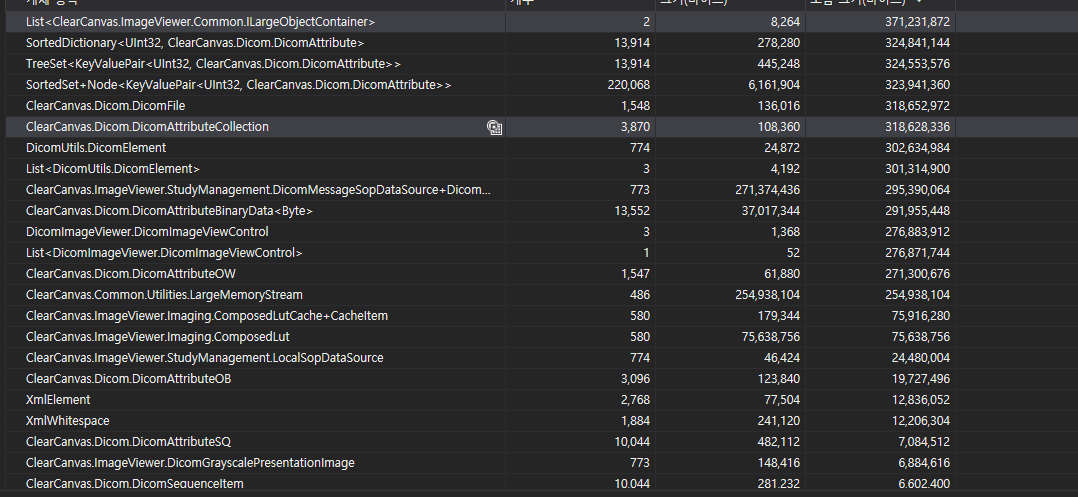 지금 outofmemory를 해결 할 방법을 찾고 있습니다. 사진에서 보이 듯이 내부 데이터들이 엄청나게 데이터를 많이 사용하고잇습니다.