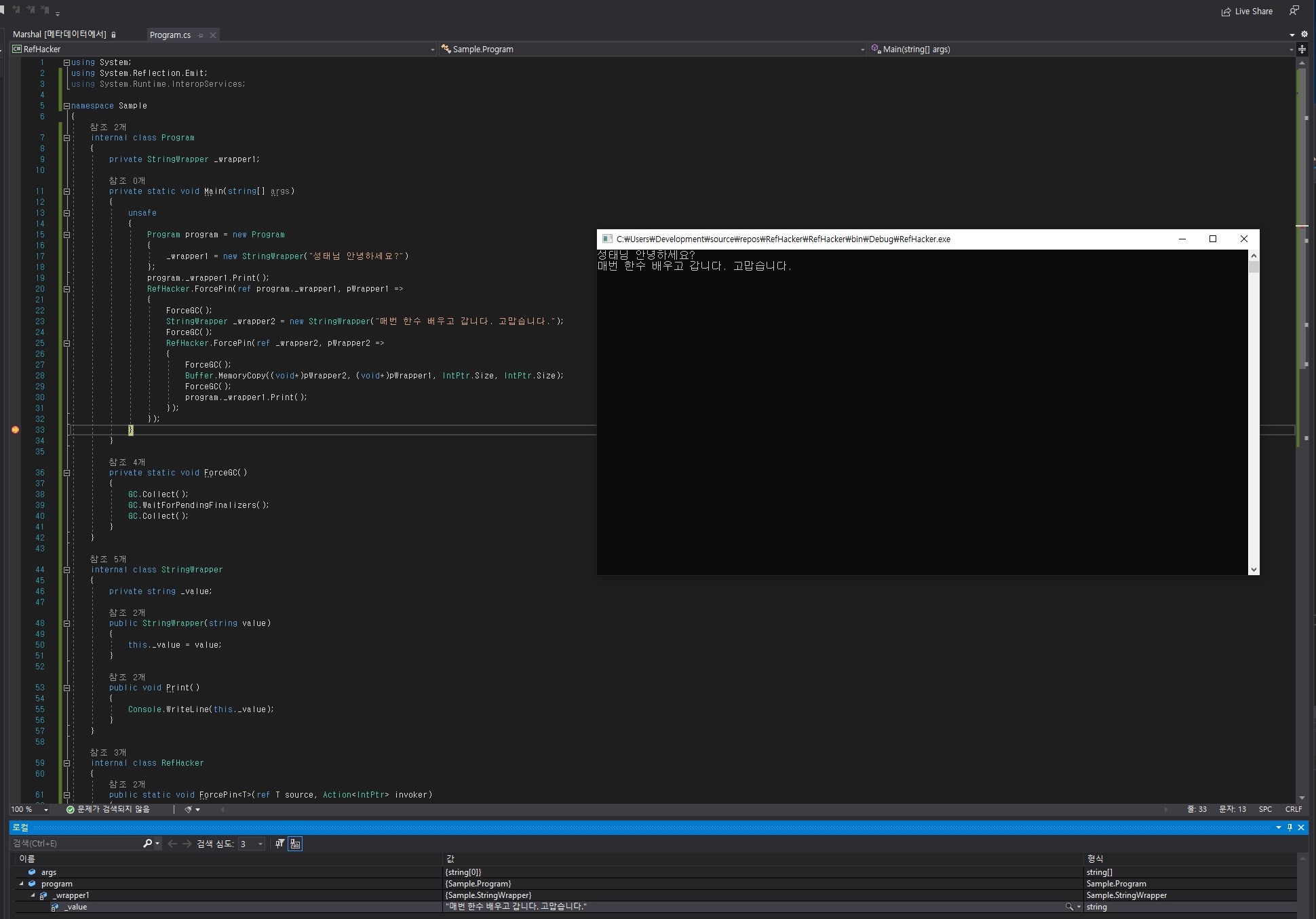 부모글 보이기/감추기 AD BLOCK 해제 요청 이 글에는 광고가 많이 들어가 있지 않습니다. adblock을 해제하셔도 글을 읽는데 그다지 부담이 없으니 해제를 부탁드립니다. (연관된 글이 1개 있습니다.) 간단한 인증샷 입니다. [다음 글] WPF에서 Richtext의 View 문의[이전 글] 선생님 마우스 클릭이벤트 질문이 있습니다. [연관 글] .NET Framework: 1185. C# - Unsafe.AsPointer가 반환한 포인터는 pinning 상태일까요? [최초 등록일: 3/30/2022] [최종 수정일: 3/31/2022] 비밀번호 댓글 작성자 2022-03-30 07시56분 [guest] 이방법 또한 C# 11의 ref 필드를 대체할순 없을것 같네요. 아마 그 트윗에 올라온 void*로 구현한 사례도 pinning이 안되기때문에 쓸모가 없을듯 합니다. ref 필드가 정말 강력한 녀석이네요 [guest] 2022-03-30 10시24분 구체적인 소스 코드를 올리지 않아서 어떤 수준까지 기대했는지는 모르겠지만, 그 트윗에 올라온 사례는 문제가 없습니다. 왜냐하면 ref struct에 담기는 용도이기 때문입니다. 아마도, 제가 쓴 글의,C# - Unsafe.AsPointer가 반환한 포인터는 pinning 상태일까요?; https://www.sysnet.pe.kr/2/0/13018마지막 부분을 주의깊게 읽지 않으셔서 그렇게 생각하시는 것 같은데요, Unsafe.AsPointer는 힙에 있는 개체의 위치를 읽기 위해 만들어진 용도가 아니고, 스택에 있는 변수의 위치를 읽기 위한 것입니다. 따라서 pinning이 필요 없으므로 그것 역시 ref struct의 용도에 잘 맞아떨어집니다. 그리고 분명히, 마이크로소프트는 GC의 성능 문제로 힙에 ref 필드를 유지하는 것은 안 된다고 이미 명시하고 있습니다. 정성태 2022-03-31 12시28분 [guest] 아. C# 11부터 힙에 ref 필드가 허용되는건줄 알았네요. -_-; 답변 감사드립니다! [guest] ... 76 77 78 79 80 81 82 83 84 85 86 87 88 [89] 90 ... NoWriterDateCnt.TitleFile(s) 233이한욱8/31/200523099가상 시리얼 포트(Virtual COM Port) 만들기 [1]232정준명8/30/200514949[질문] HTTP 모듈/핸들러 또는 RewriteURL 관련입니다. [4]231이진일8/30/200513602참조한 dll 들은 어떻게 배포하나요...? [1]2303028/29/200515030[질문] 웹에서 Exchange Server 사용자 추가 [2]229김재명8/26/200514165성태님의 홈페이지 J & J의경우 보안모듈을 어떻게 해결하셨는지 궁금합니다. [1]227임규진8/24/200514202리소스 파일에 그림 첨가하는 방법 좀 알려 주세요. [1]226최인호8/19/200513783스마트 클라이언트 exe 버젼 실행시 시간이 너무 오래 걸립니다. [1]225코디8/17/200514347[질문]닷넷프레임워크 설치여부 [1]224박준현8/17/200513642[질문]중첩 그리드라고 해야 할까요? [1]223매커7/28/200513178강좌 잘 읽었습니다. [1]222김지영7/27/200514740C#에서 oledb 사용하다가 에러 [2]221박민우7/26/200515366스마트클라이언트에서의 DB접속 [1]220테드7/22/200514471스마트 클라이언트에서 원치 않는 패킷 송수신 문제... [3]219김종욱7/21/200514631안녕하세요... 툴밴드 콤보 박스에 대해.. [1]218음7/21/200513306스마트 클라이언트에 대한 질문 입니다. [1]1217왕초보7/21/200513695마소강좌의 AxForSmartClient 를 실행시키고 싶은데요... [1]215궁금증6/23/200513333도대체 이게 무슨 에러 일까요... [1]213궁금이6/18/200515295Winform 형태의 NTD에서 사용자 로그인 성공 여부 정보 유지하는 방법 [1]212궁금이6/16/200513177ActiveX 컨트롤이 NTD에 이상이 없는지요? [1]211류성태6/15/200513852smart client에 관하여.... [1]206헤커의작...6/14/200512592[질문] 안녕하세요. 성태님의 홈페이지에서 화면전환시 처리되는 것에 관련된 건 [3]205김종욱 6/12/200513114com+ 에서 서버 소켓을 열고 싶고요... com+에서 thread는 어떻게 돌리는지 알고 싶습니다209정성태6/14/200512834 [답변]: com+에서 서버 소켓을 열고 싶고요... com+에서 thread는 어떻게 돌리는지 알고 싶습니다204정현일6/9/200513452Smart Client 실행시 SecurityException1208정성태6/14/200513776 [답변]: Smart Client 실행시 SecurityException [1]203나그네6/9/200513795태오 사이트 Smart Client 강좌중에서요 ... 76 77 78 79 80 81 82 83 84 85 86 87 88 [89] 90 ...