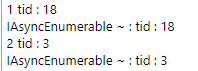Console.WriteLine($"IAsyncEnumerable ~ : tid : {Thread.CurrentThread.ManagedThreadId}");