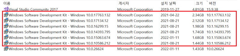 부모글 보이기/감추기 AD BLOCK 해제 요청 이 글에는 광고가 많이 들어가 있지 않습니다. adblock을 해제하셔도 글을 읽는데 그다지 부담이 없으니 해제를 부탁드립니다. Visual Studio - 4.81기가 WS development kit - 11기가 이상 WS development kit가 첨부파일처럼 여러개 깔려있는데 최신 버전 1개만 남기고 삭제하면 안되나요? [다음 글] static instance의 initialize 순서가 보장되나요?[이전 글] Python IDE - 비주얼스튜디오 [최초 등록일: 2/25/2023] [최종 수정일: 2/25/2023] 비밀번호 댓글 작성자 2023-02-25 01시08분 네, 안 쓰시는 거면 삭제하셔도 됩니다. (저도 보통은 마지막 버전만 유지합니다.) 정성태 2023-02-27 01시18분 [주민호] 저걸 놔눈채로 5년을 써오고 우연히 컴용량이 적색등이 켜져서요마지막거 남기고 삭제해도 문제없겠지요?그냥 삭제해보겠습니다꾸버억 [guest] 2023-02-27 09시10분 [주민호] 어 이거 간단한 문제가 아니던데요해외 커뮤너티나 국내 커뮤너티에서도 활발한 논의가 진행되고누구도 정확한 답을 못내는 중이네요https://jacking75.github.io/NET_remove_sdk/ [guest] 2023-02-27 09시28분 링크하신 것과 "Windows Software Development Kit"은 완전히 다른 것입니다. 정성태 2023-03-02 10시04분 [주민호] 어리석은 질문인것같은데2021년 9월21일 단 하루에 각기 다른 버전의 윈도우 SDK가4개나 자동으로 설치되었을까요?학습용으로 Unity를 깔았는데 이것도 관련 있을지요?Windows10.0.10586.212 (1.44GB)Windows10.0.14393.795 (1.75GB)Windows10.0.16299.15 (1.98GB)Windows10.0.17134.12 (2.12GB)정말 궁금하네요<참고> 윈도우 SDK 버전 제거절차 - https://learn.microsoft.com/en-us/dotnet/core/install/remove-runtime-sdk-versions?pivots=os-windows [guest] 2023-03-02 10시20분 글쎄요, 그렇게 설치된 이유는 저도 잘 모르겠습니다.그건 그렇고... 위에서 한번 알려 드렸는데 왜 자꾸 혼동하시는지... ^^; "<참고> 윈도우 SDK 버전 제거절차" 링크한 것도 .NET SDK를 제거하는 방법이고, 이것 역시 Windows SDK와는 무관합니다. 정성태 2023-03-02 10시50분 [주민호] 무식해서 죄송ㅋㅋWindows Software Development Kit == Windows SDK인데제가 링크연결한 것이 Windows SDK 삭제에 대한 이야기가 아니란 것이지요? [guest] 2023-03-02 10시51분 [주민호] Windows [S]oftware [D]evelopment [K]it == Windows [S][D][K] 이렇게 알고 있는데 아닌가요? [guest] 2023-03-02 11시01분 알고 있는 게 맞습니다. 그런데 2개 링크한 것들의 제목과 내용이 "Windows SDK"였나요?참고로, "Windows SDK"는 그냥 제어판의 프로그램 추가/삭제에서 제거하시면 됩니다. 별다른 방법이 필요하지 않습니다. 정성태 2023-03-02 11시17분 [주민호] .Net SDK와 Windows SDK가 다른 것이 었다니 ㅜㅜ [guest] NoWriterDateCnt.TitleFile(s)