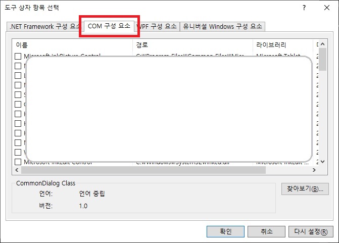 Visual Studio 2019 에서는 '도구 상자 항목 선택'의 'COM 구성 요소' 탭에서,