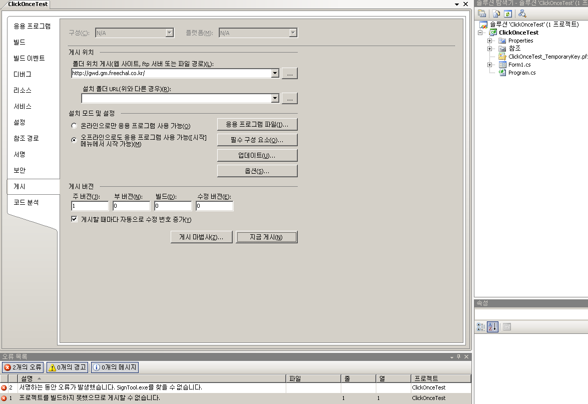 [VS.NET 2008] 스마트클라이언트 게시 오류...도와주세요~ [링크 복사], [링크+제목 복사],
